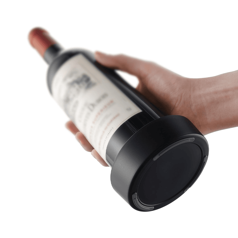 Vacu Vin Bottle Coaster features a non-slip base that protects the table from marks and scratches while preventing stains. Its flexible rubber rim ensures the coaster stays securely on the bottle. Suitable for standard 750 ml wine bottles, it catches drips and stays with the bottle, offering both practicality and protection with every pour.