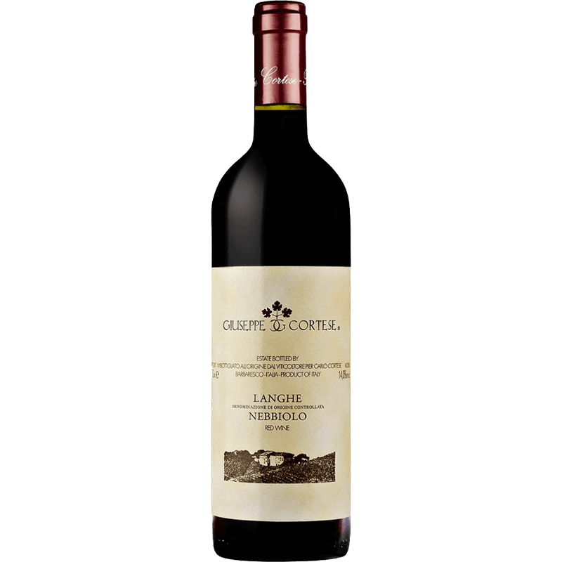 Giuseppe Cortese Nebbiolo embodies all the character and elegance of the great Nebbiolo, with a strong yet delicate aroma. It is dry, fresh, and pleasant, offering a distinctive tannic balance. Its garnet red color adds to its visual allure.